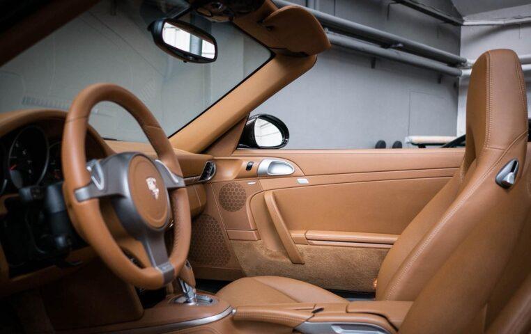 911 (997.2) Carrera S Cabriolet; 12/08; 385CV; 33 480km; Macadamia métal; Full cuir brun naturel; Capote Cocoa.