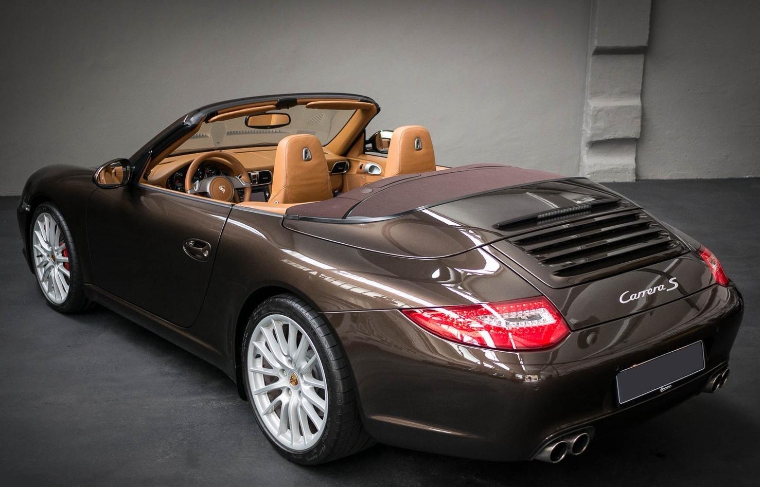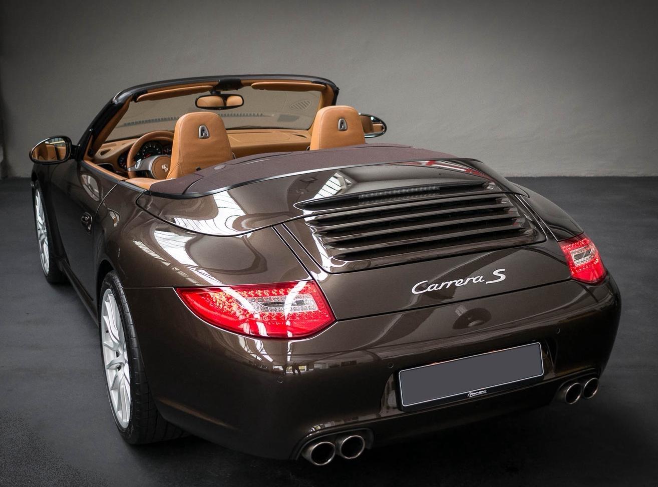 911 (997.2) Carrera S Cabriolet; 12/08; 385CV; 33 480km; Macadamia métal; Full cuir brun naturel; Capote Cocoa.